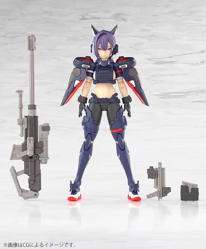 Skoll Sharpshooter is the second entry in the "Yggdrasis" lineup from the "Megami Device" model-kit series from Kotobukiya! This series features characters and creatures from Norse mythology as its motif, mixed with a hard-edged military design. This Block2-compatible series was designed by Nidy-2D-, who also worked on the Asura and Koubu series.