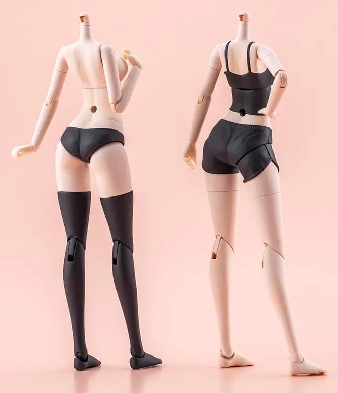 Two Body Types -- two types of bodies are included (a head is not included). The Relaxation Wear type features a short camisole and shorts, allowing your figure to relax at home! The Innerwear type can be dressed in various doll clothes from the separately-sold Tiny Closet lineup from Kotobukiya, or outfits designed for 15cm-16cm figures.