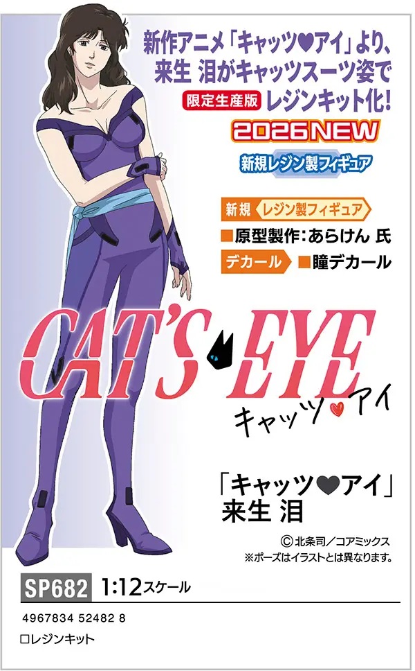 Rui Kisugi from the new "Cat's Eye" anime is now available as a 1/12-scale resin figure kit from Hasegawa, wearing her catsuit! Decals are included for her eyes; please be aware that the model kit's pose will be different from the illustration. Order yours today!