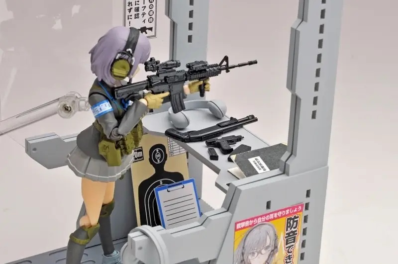 Get your 1/12-scale figures a shooting range for target practice! This setup can be used with the Little Armory weapons and figures, and any 1/12-scale figure who'd like to brush up on their shooting skills. Includes a base, two booth partitions, papercraft targets, ear muffs and more! Measures about 10cm by 10cm by 20cm, and assembly is easy. Order today!