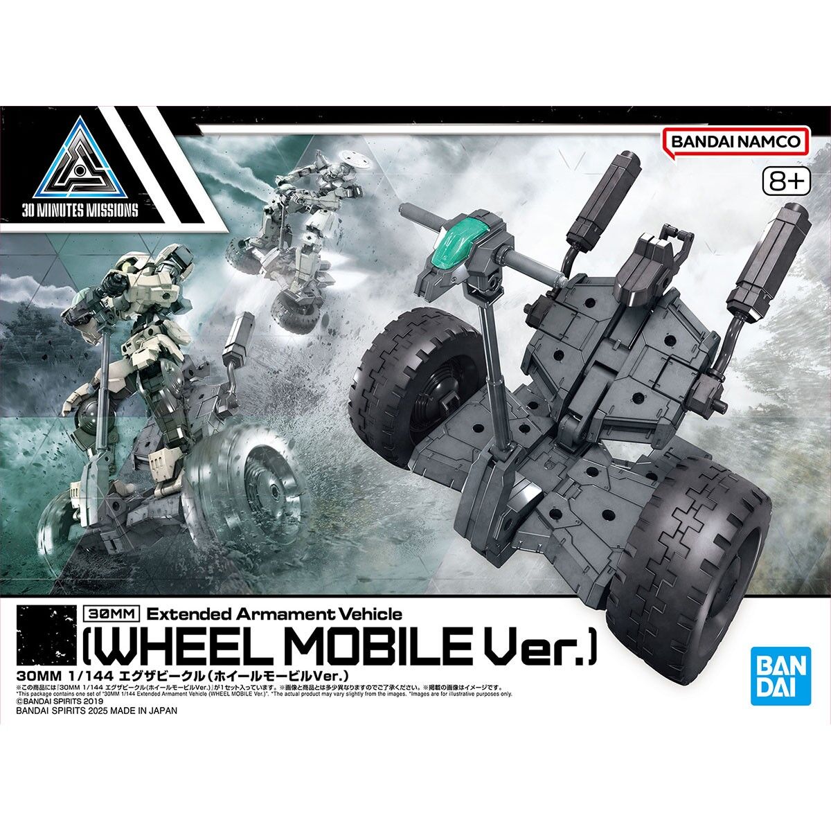Bandai's "30MM Extended Armament Vehicle" series welcomes the Wheel Mobile Ver.! You can rearrange its parts to reproduce two forms: a wheeled mode and a hovering mode. Two types of wheels are included -- large and small. It can be used by existing "30 Minutes Missions (30MM)" units, sold separately. The grip can be held in different positions by parts replacement, and it can be displayed in a dynamic manner by using an Action Base 7 (sold separately). Place your order today!