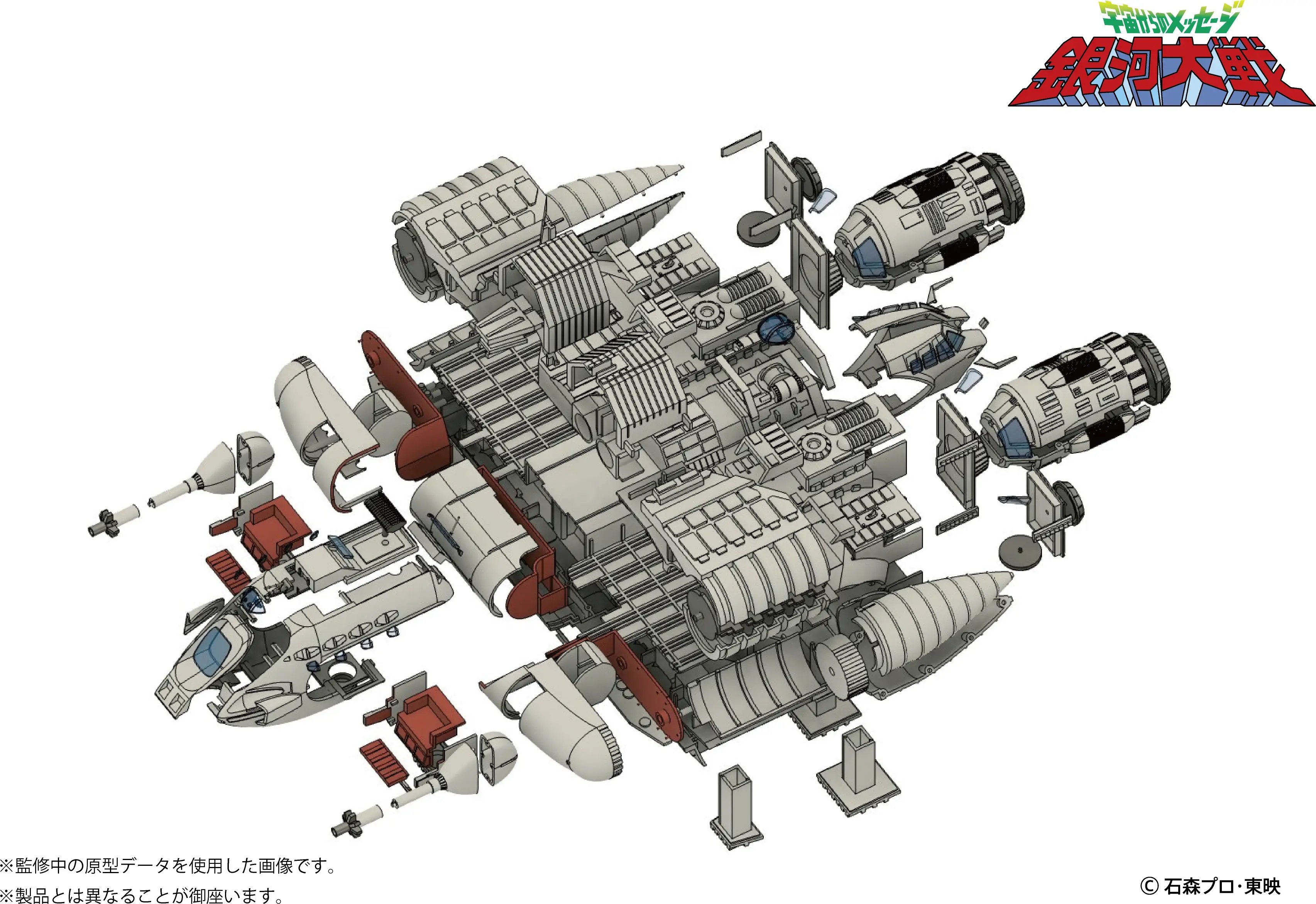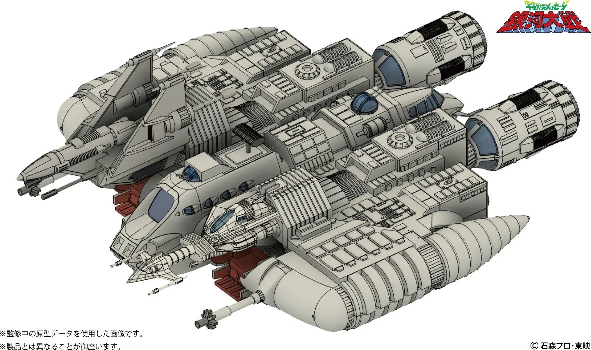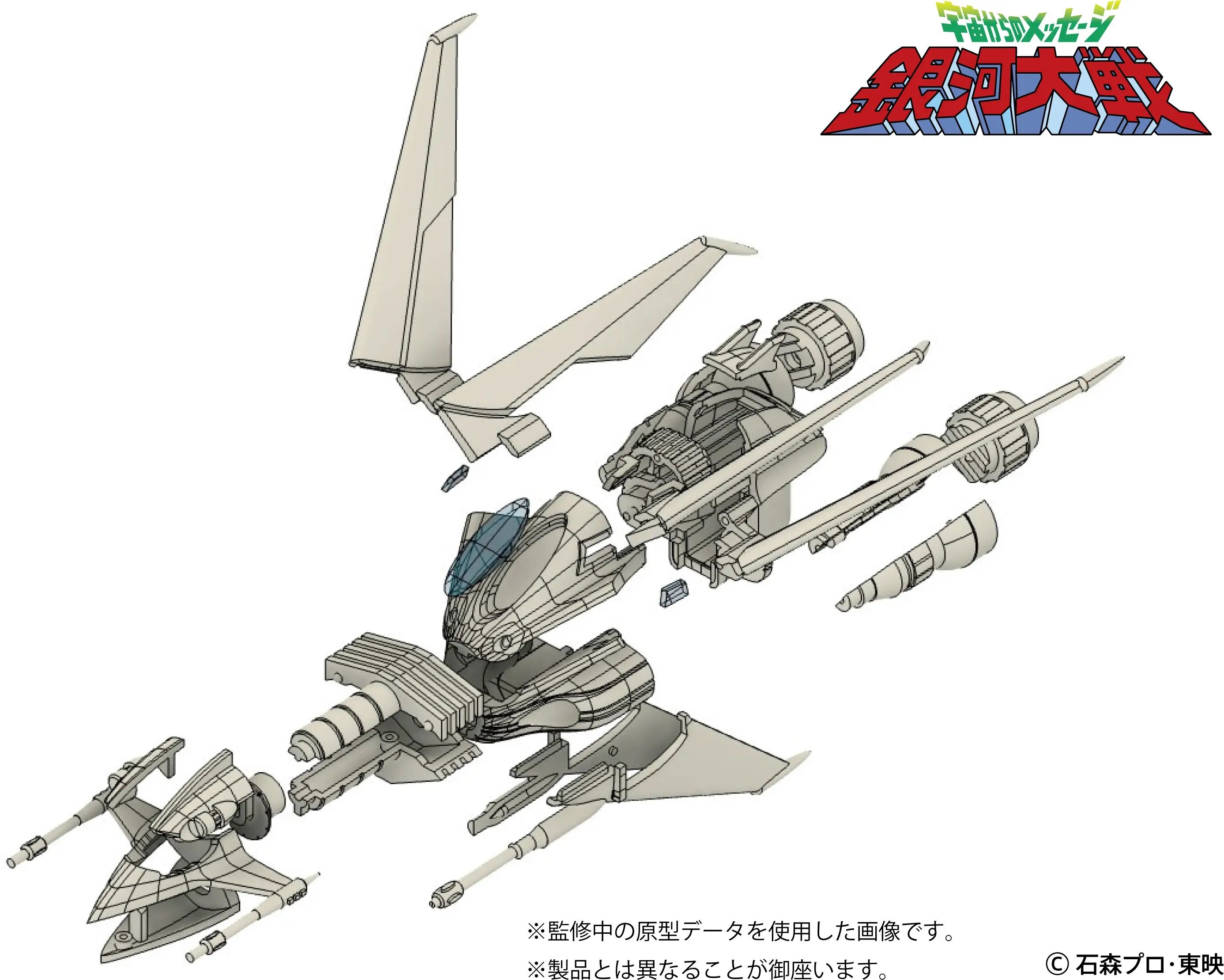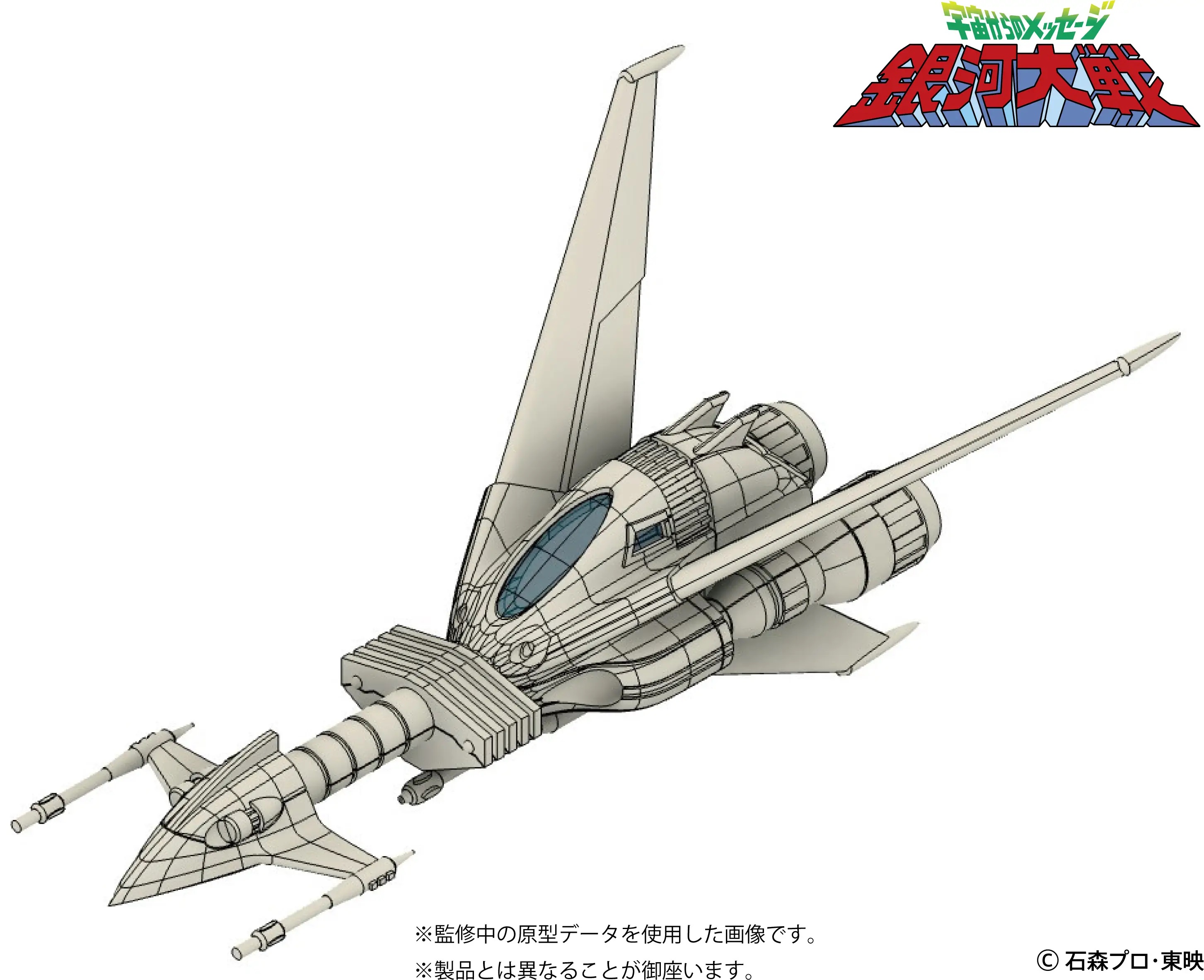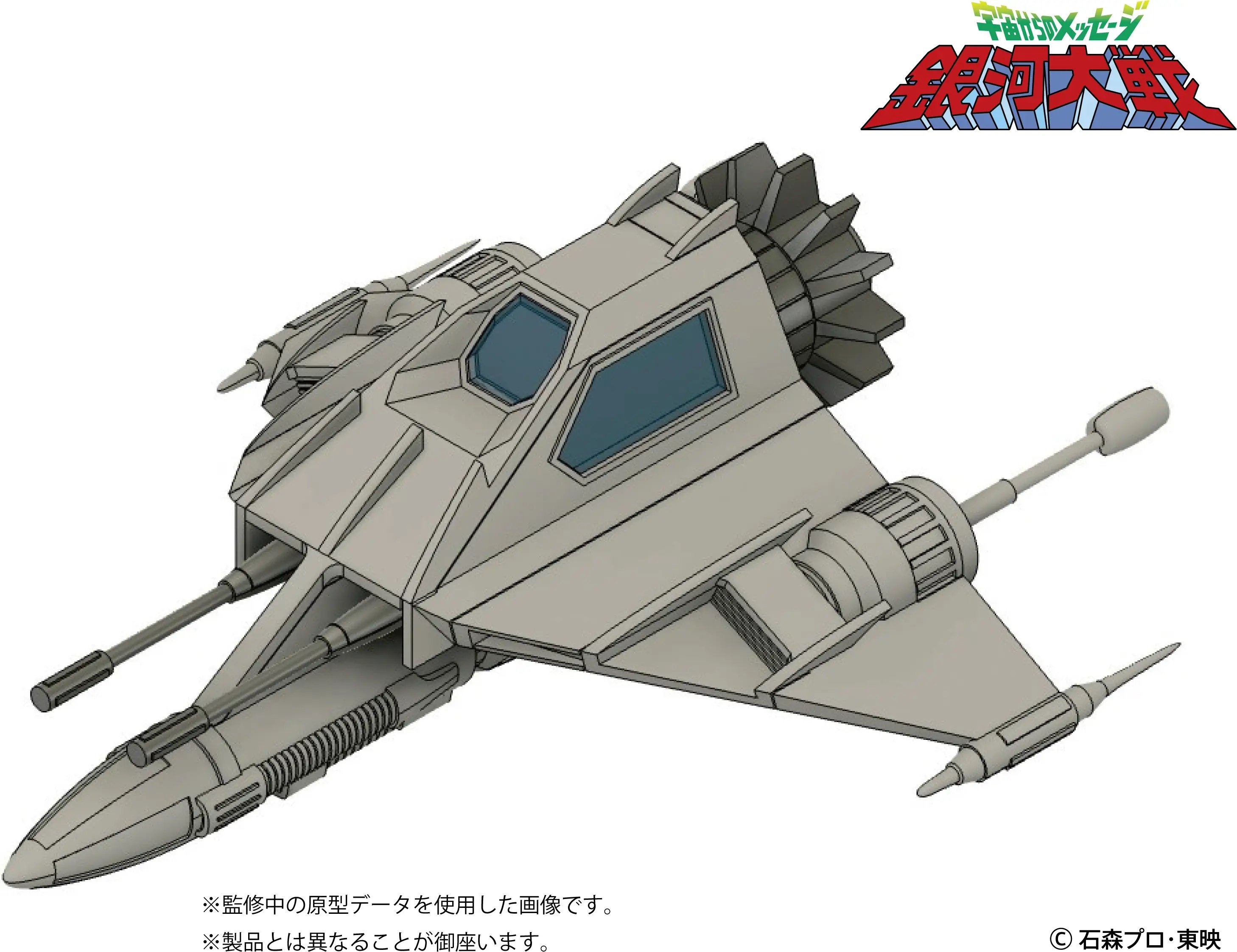 The spaceship Liabe Special, as seen in the special effects TV drama "Message from Space: Galactic Wars" that aired on TV in 1978, is now available as a 1/144-scale model kit from HMA! Its dual-wing catapults, its most prominent feature, can be deployed; both the Galaxy Runner and Comet Fire are included, and they can be combined with the Liabe Special. Order yours today!