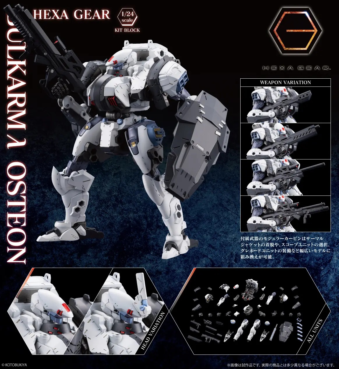 The Bulkarm Lambda Osteon, a variant of the latest Bulkarm Alpha series developed by MSG Valiant Force, joins Kotobukiya's "Hexa Gear" lineup! Featuring a fully enclosed cockpit and a wide range of articulation, this versatile type switches its armament from a heavy submachine gun to a modular carbine, making it suitable not only for urban combat, but also for a wide range of battlefields.