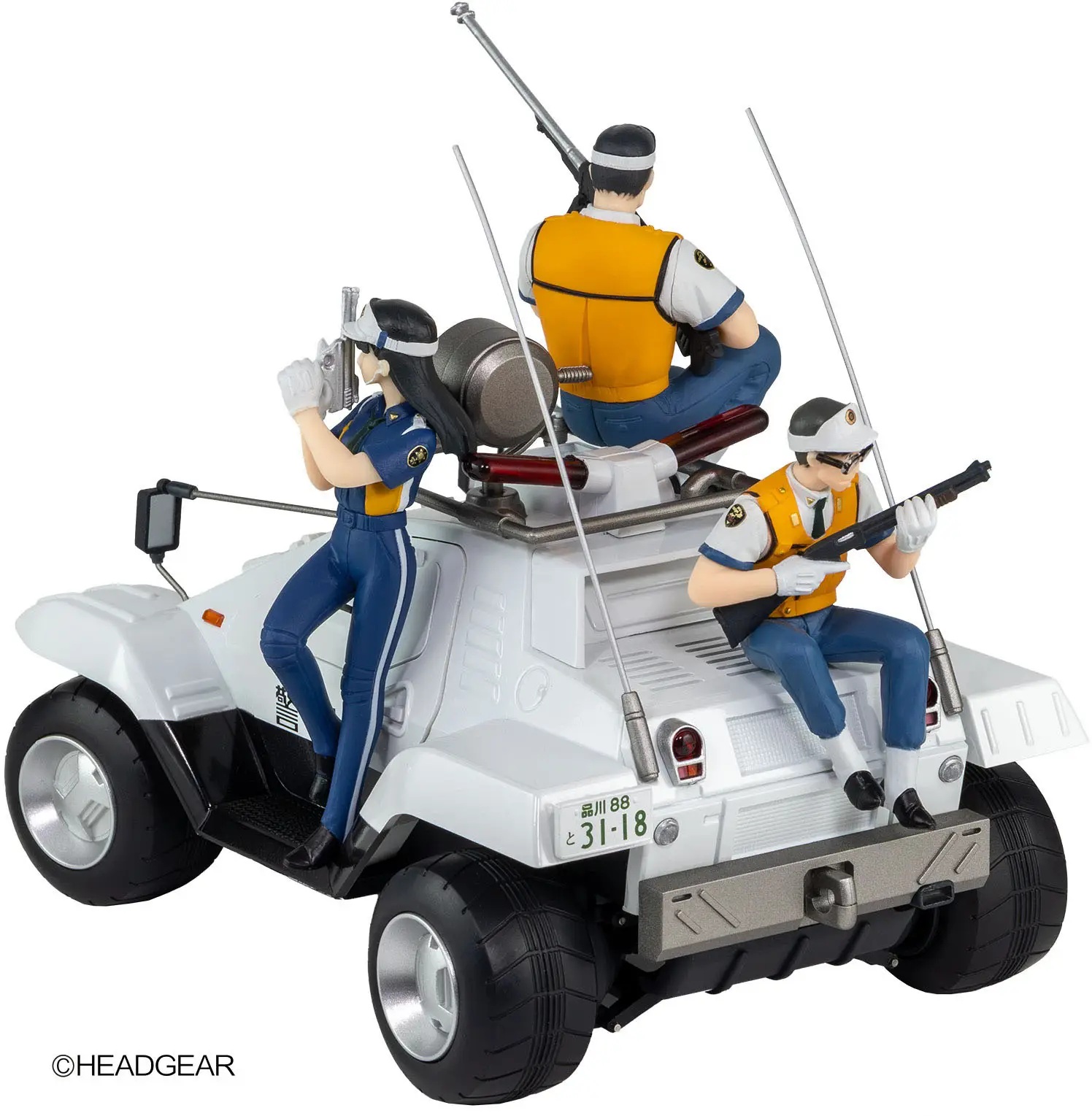 Pit-Road's highly detailed 1/24-scale fully finished model of the Type 98 Command Vehicle, as seen in the final battle on the Ark in "Patlabor The Movie," is back! This amazing preassembled model features precise molding to show off the internal roll bars, auxuliary seats, and the opening doors and front hatch; pre-assembled and pre-painted figures of Special Vehicle Division 2 members Goto Kiichi, Kanuki Clancy, Yamazaki Hiromi, Shinji Mikiyasu, and driver Shinohara Yuma are all included. Place your order today!
