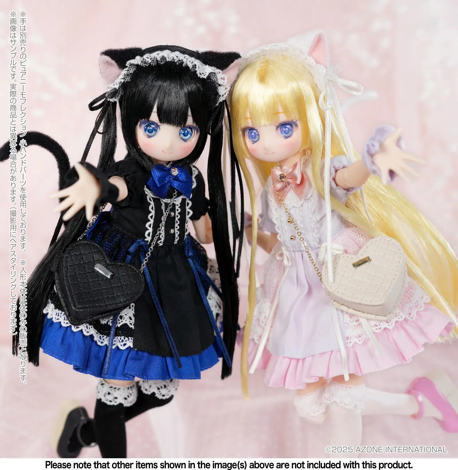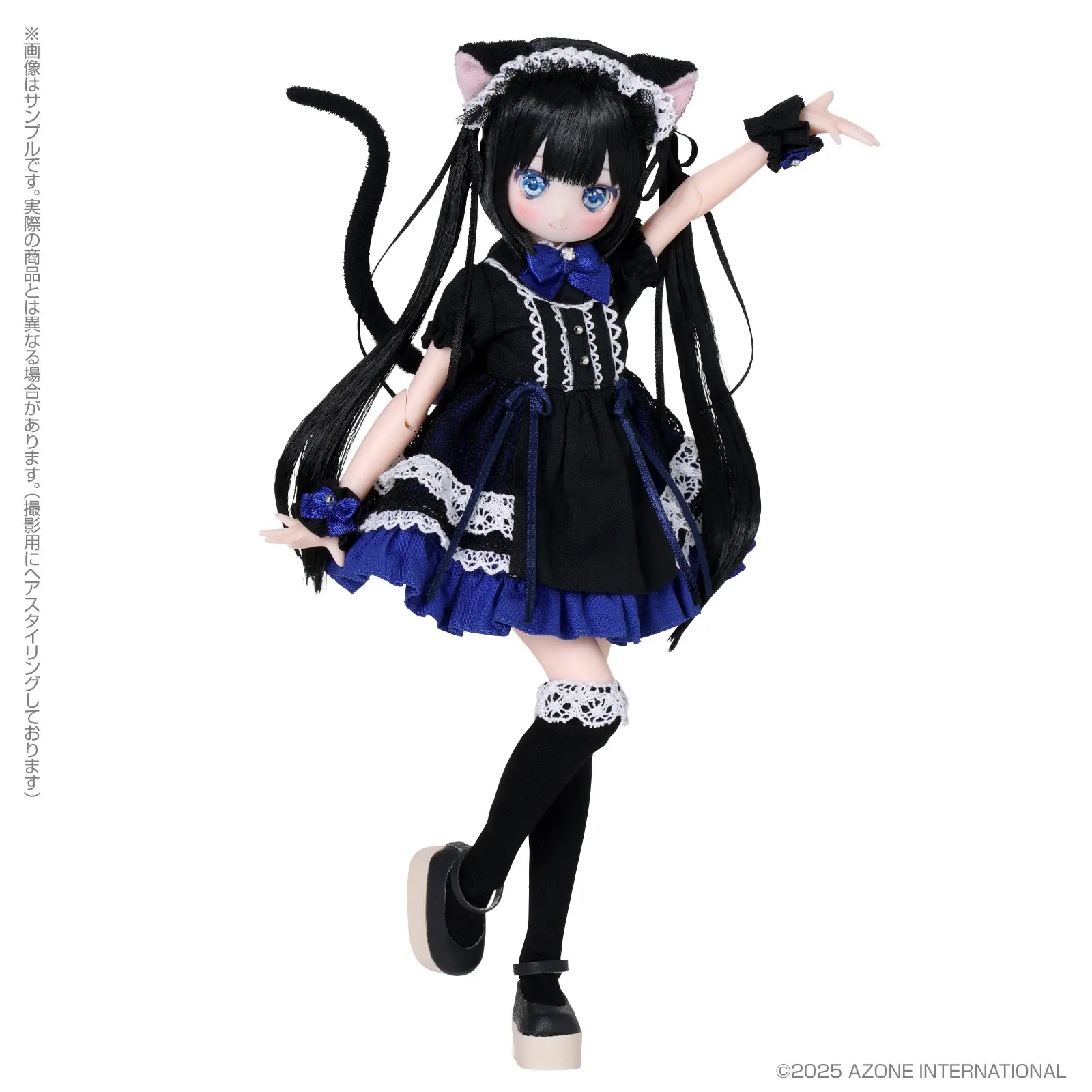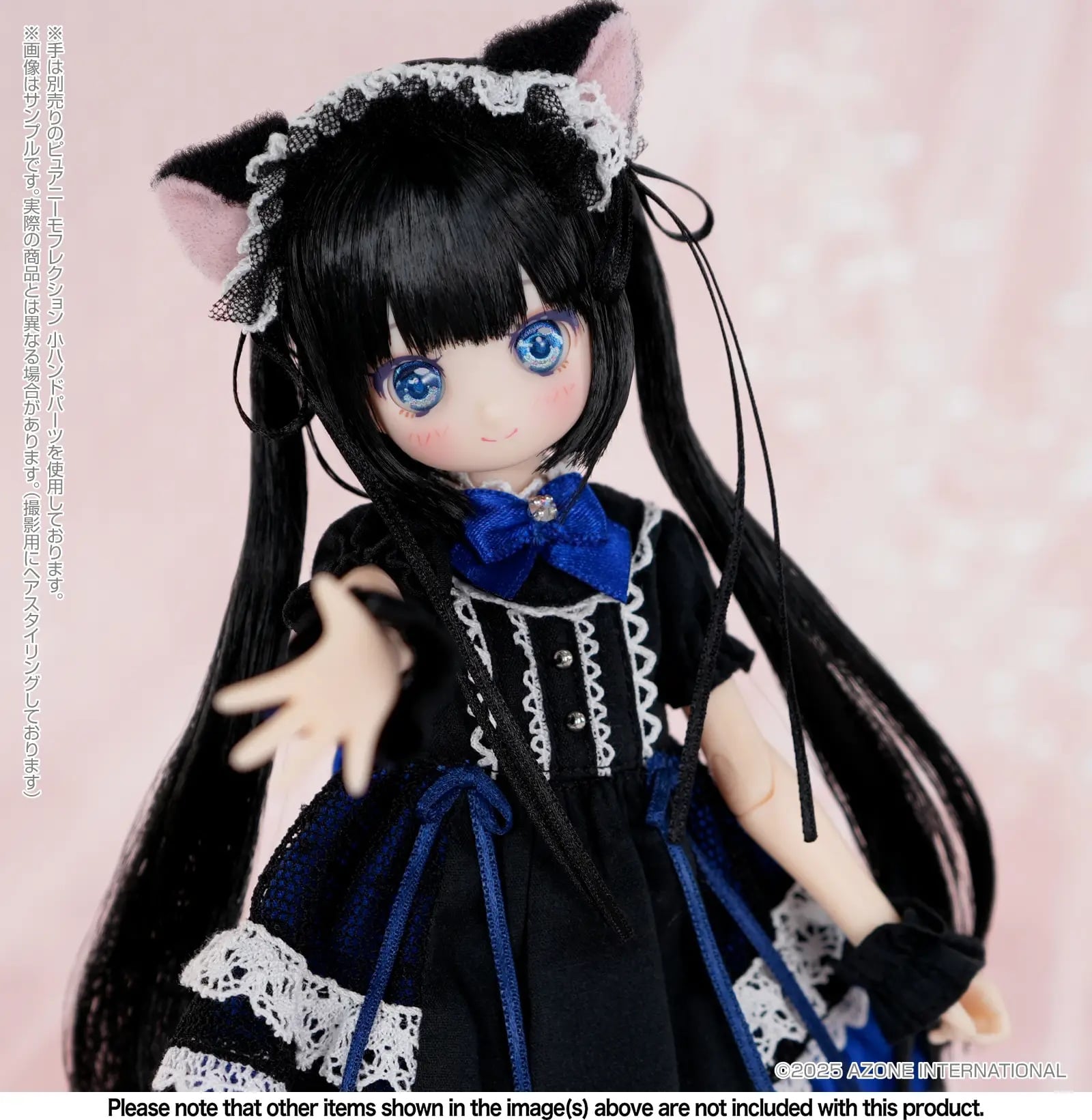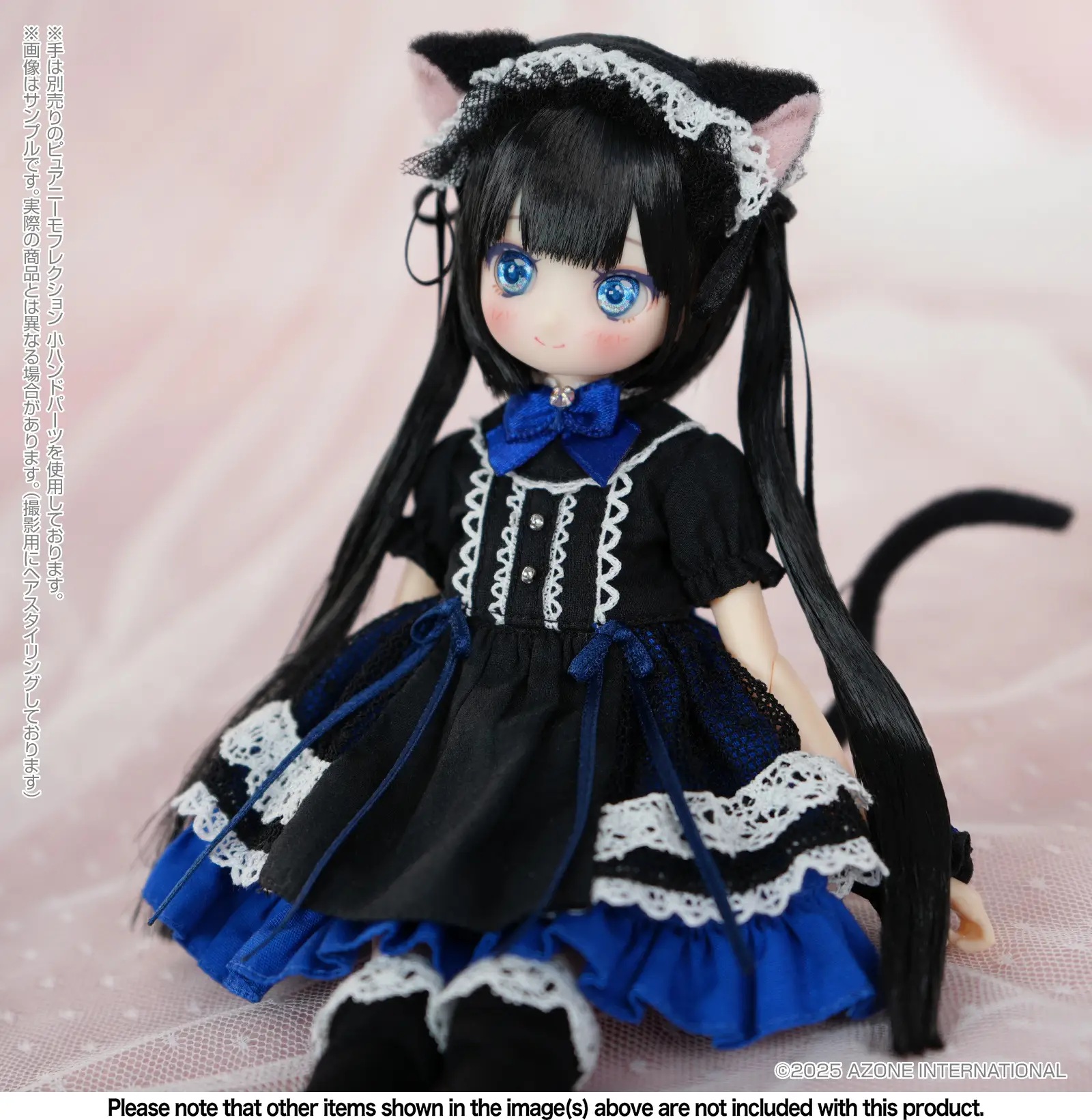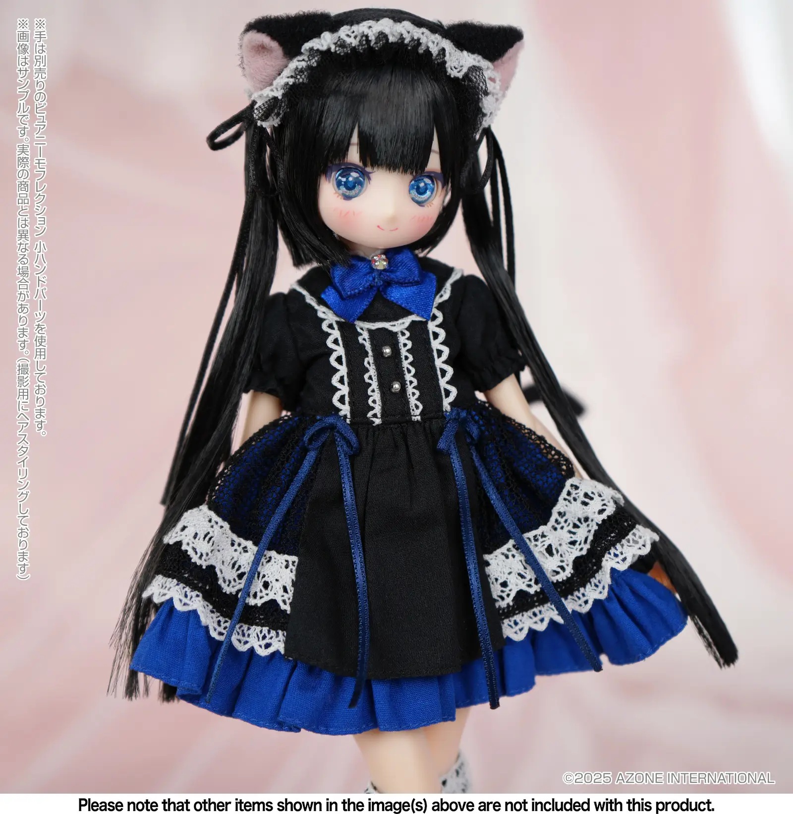 The newest character in Azone's "A Gift from M.K." series is Mebae! Mary Knight has give Mebae a complete makeover, with blue-toned makeup to match her dark outfit! The sparkling, shimmering eyes are the first metallic eyes used for Mebae, and her adorably flouncy dress was designed with a specific length to beautifully showcase her slender legs. She's built on a Pure Neemo Flexion XS doll body for superior posability, too. Order her for your own doll family today!