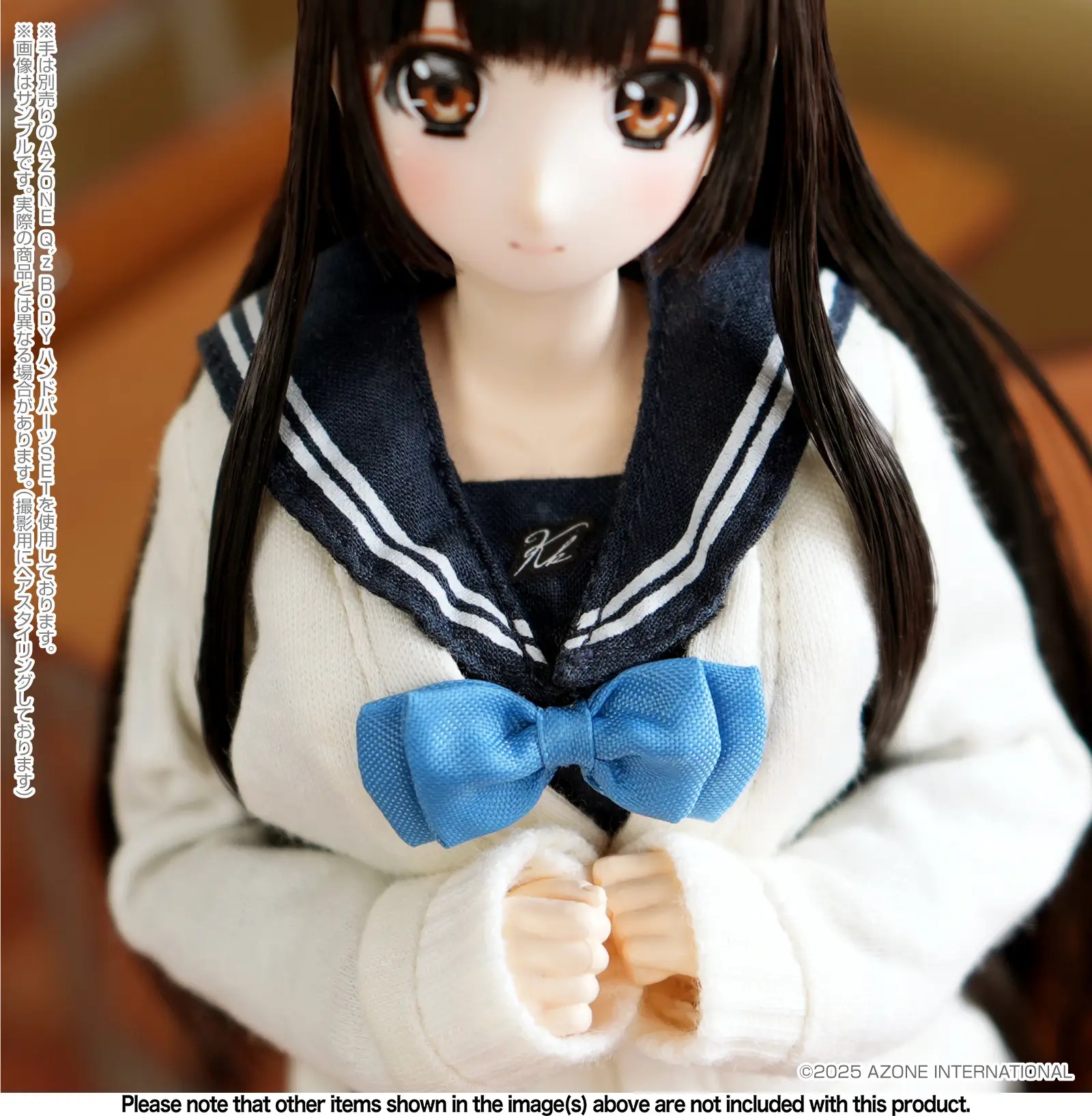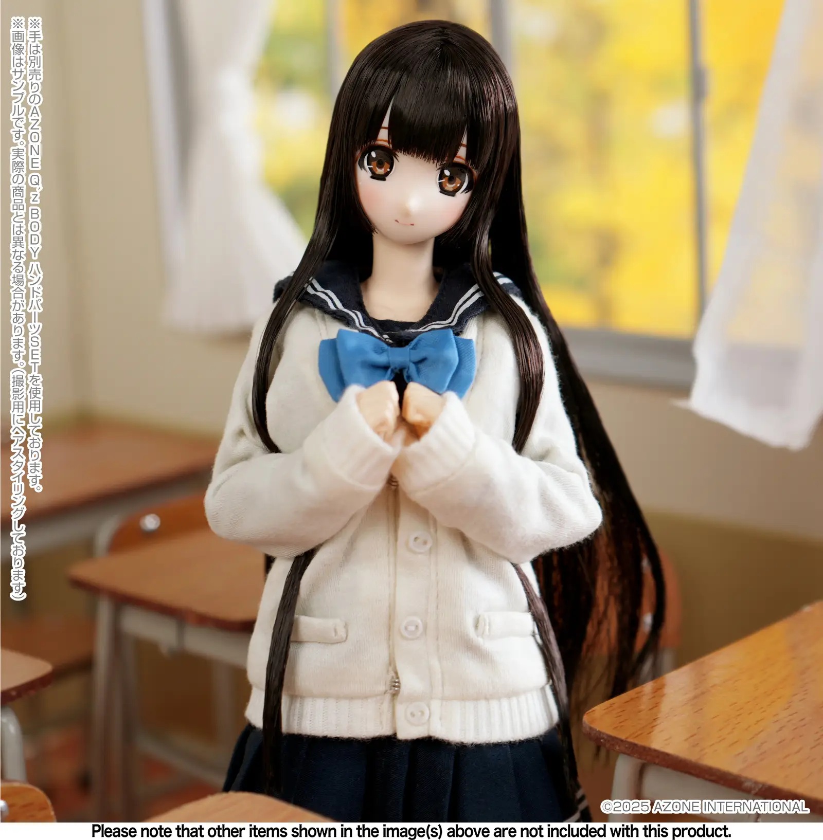 Mahiro from Azone's "Happiness Clover" lineup is now available in their 1/6-scale doll lineup, built on an Azone Q'z Body with an S/I bustline for superior posability! She also has a hair cap that's simple to style, making it easy to handle even for beginners. Her cute Private Kazuharu High School uniform was designed and supervised by popular illustrator Kazuharu Kina, and is meticulously reproduced even at this smaller scale, down to the letters "KH" on the bib of the sailor uniform, which stands for "Kazuharu High School." The uniform can be worn as a blazer style, or as a sailor-suit style. Order her for your own doll family today!