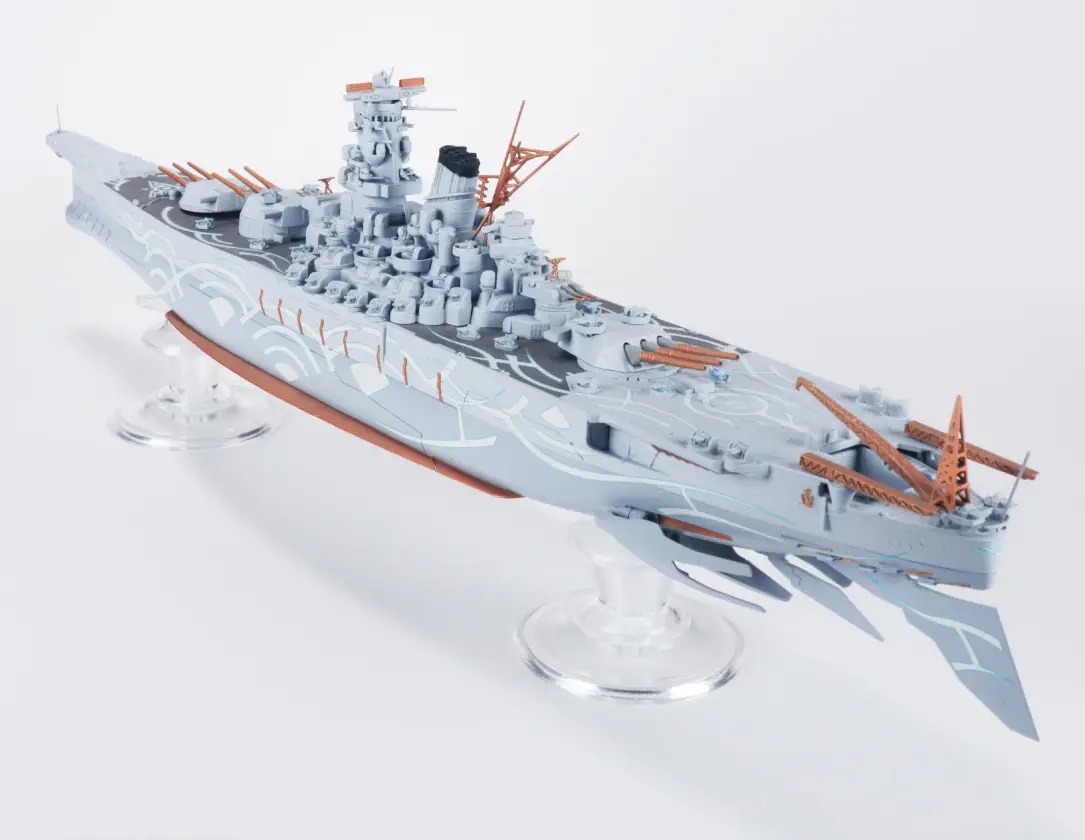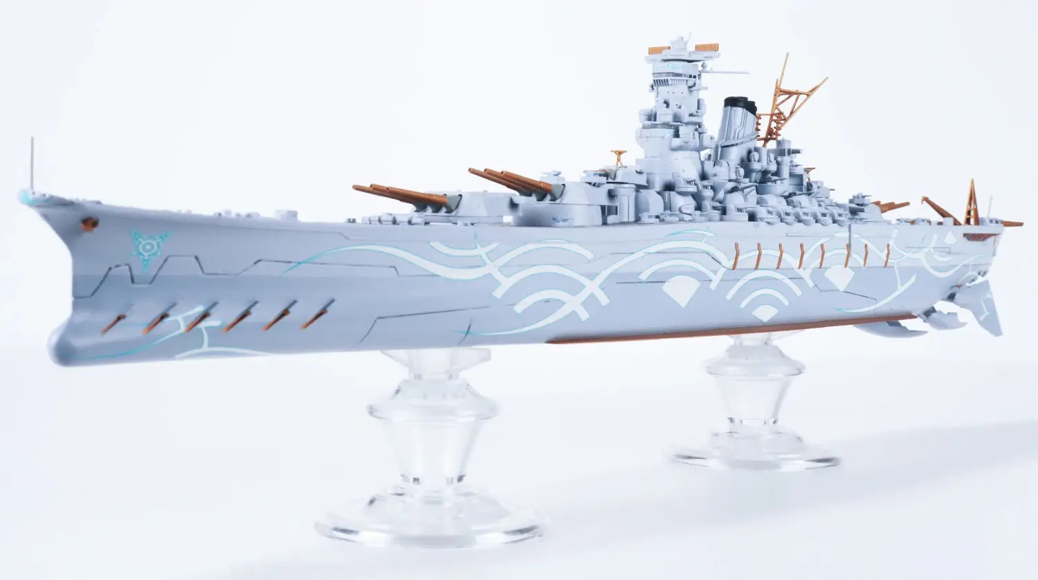 The super battleship Yamato from the Fleet of Fog in "Arpeggio of Blue Steel" is back! This precise and powerful 1/700-scale reproduction includes decals to reproduce the distinctive patterns on her sides; a display stand is included too. Place your order today!
