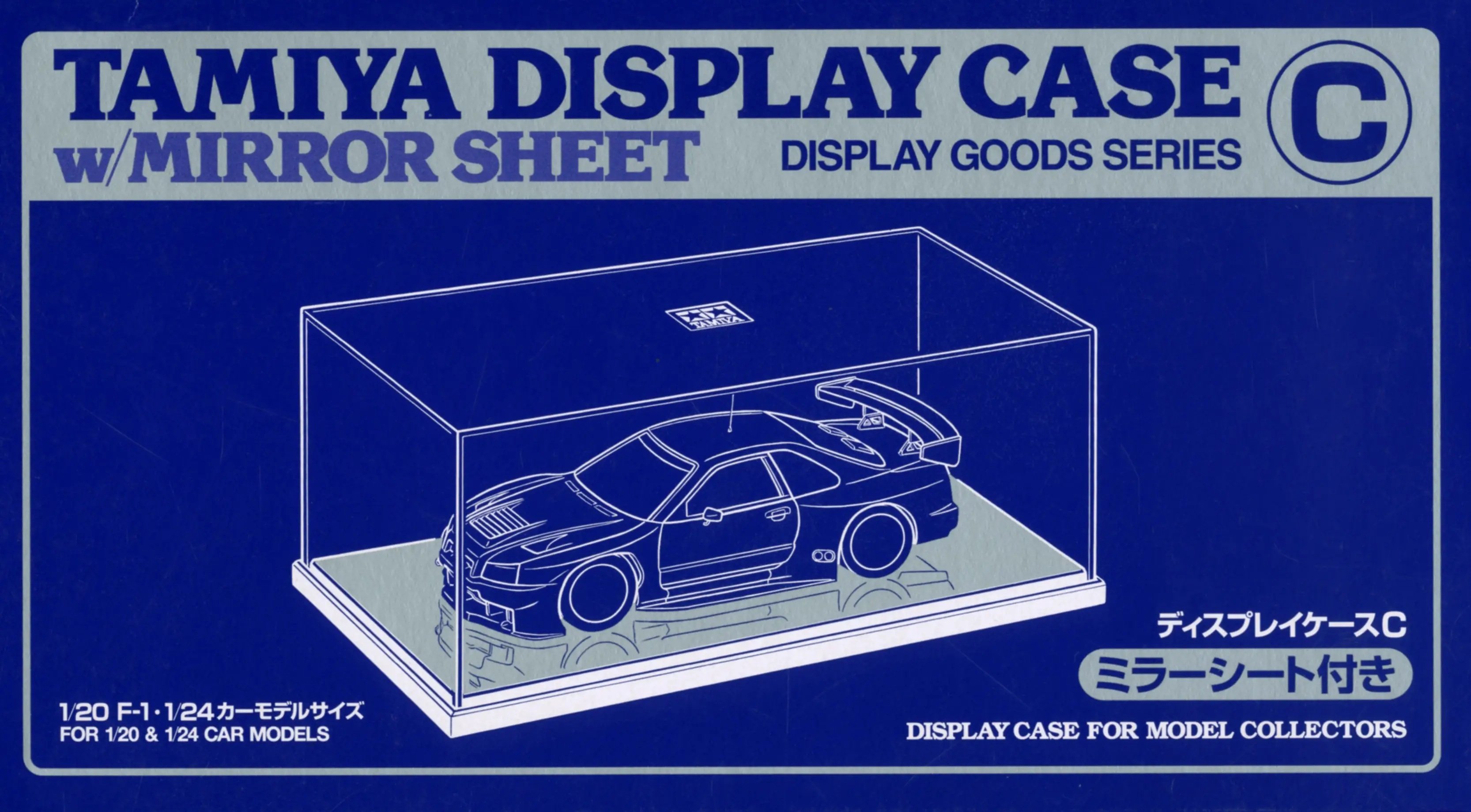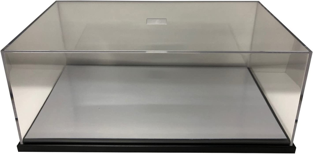 This display case reflects the underside of your model by attaching the included mirror sheet to the top of the base.