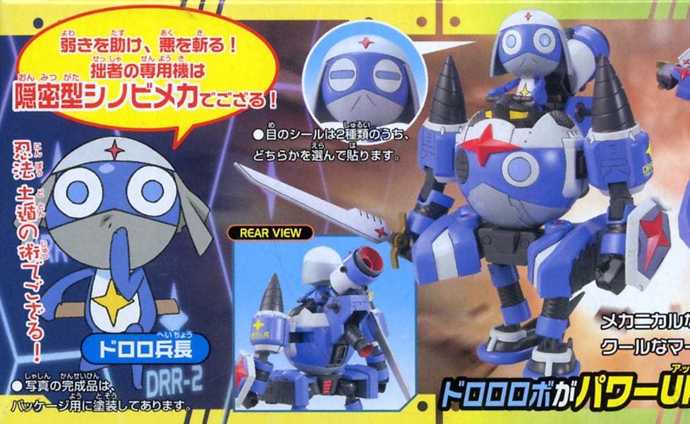 The alien frog invaders are back again to try to conquer the Earth--this time piloting "Mk.II" updates of their previous transforming robots! A simple snap-fit assembly kit, Dororo Robo Mk.II comes in parts molded in color, with a sheet of stickers included to detail it up so no painting is required. Dororo Robo Mk.II is transformable from robot mode to Onmitsu Drill mode, and can be combined with the other four Keroro Platoon members' Mk.II robots (linked below) to form God Keron!