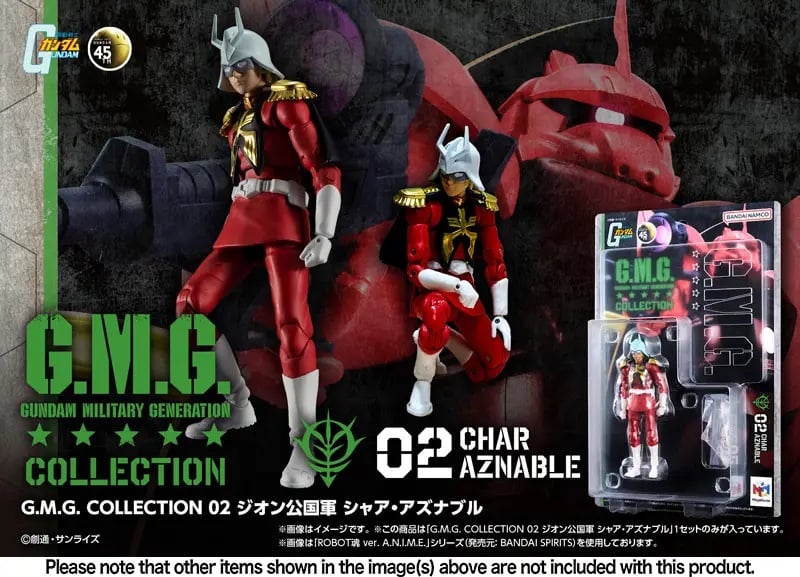MegaHouse's "G.M.G. Collection" figures are now available in affordable blister packs! Each fully posable figure is about 10cm tall, and comes with interchangeable hands and accessories; the blister packs are easy to open, and they're also great for displaying your figures without opening them! This figure of Char Aznable wears the military uniform of the Principality of Zeon; the clothing is made of a soft material so it won't interfere with posing. Place your order today!