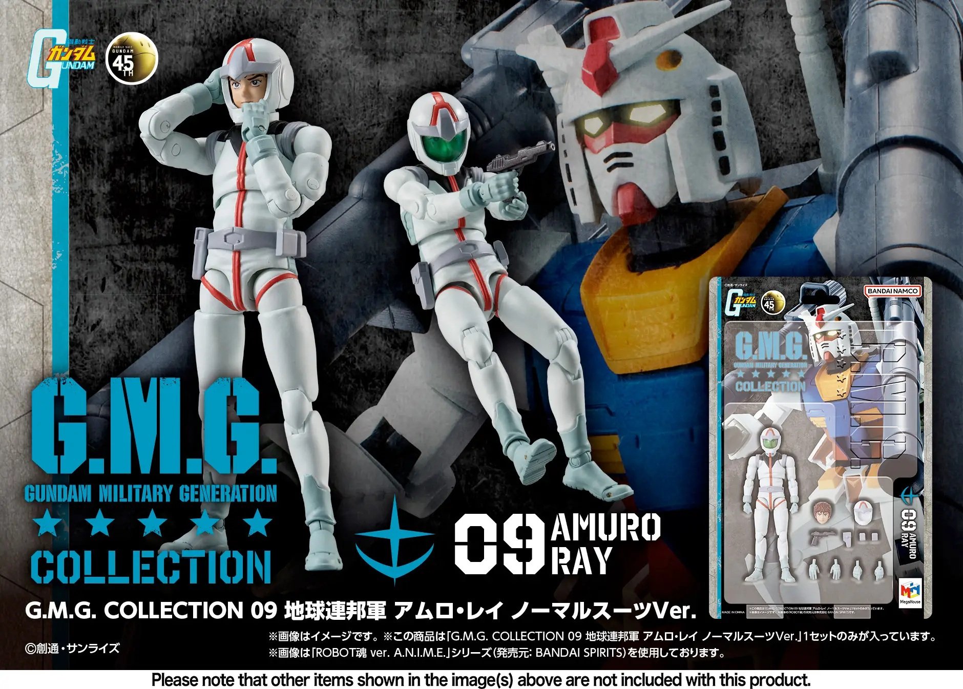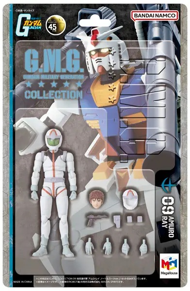 MegaHouse's "Gundam Military Generation (G.M.G.)" is a popular action-figure series known for its unique worldview, focusing on soldiers, weapons, vehicles, and more from the world of "Gundam." The newest installment features Amuro Ray, the ace pilot of the main mobile suit, Gundam, finally appearing in his normal suit! Two interchangeable helmets are included -- one with the visor open, and one with it closed; an unhelmeted head is also included. This figure is incredibly posable, and compactly sized, too -- order him for your own collection today!