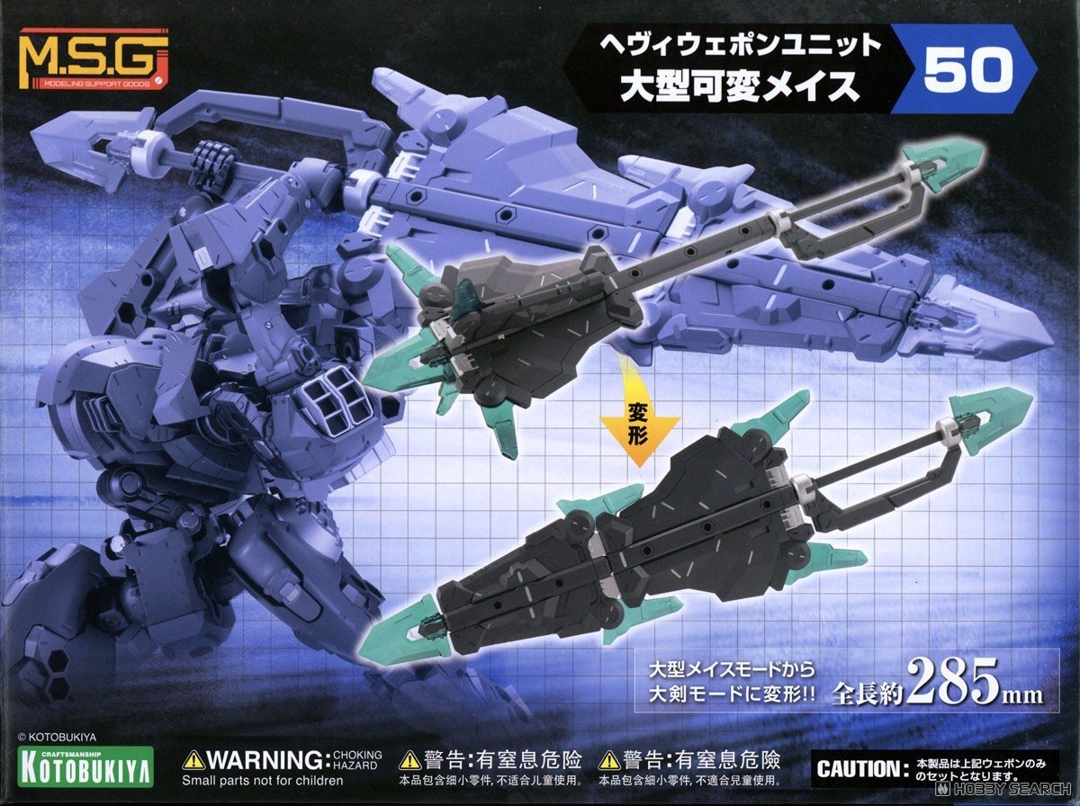 With its Heavy Weapon Unt 50, Kotobukiya brings us a large, variable weapon that can transform from its normal large mace mode into greatsword mode with a transformation mechanism, allowing you to wipe out your enemies with an extra-large weapon!