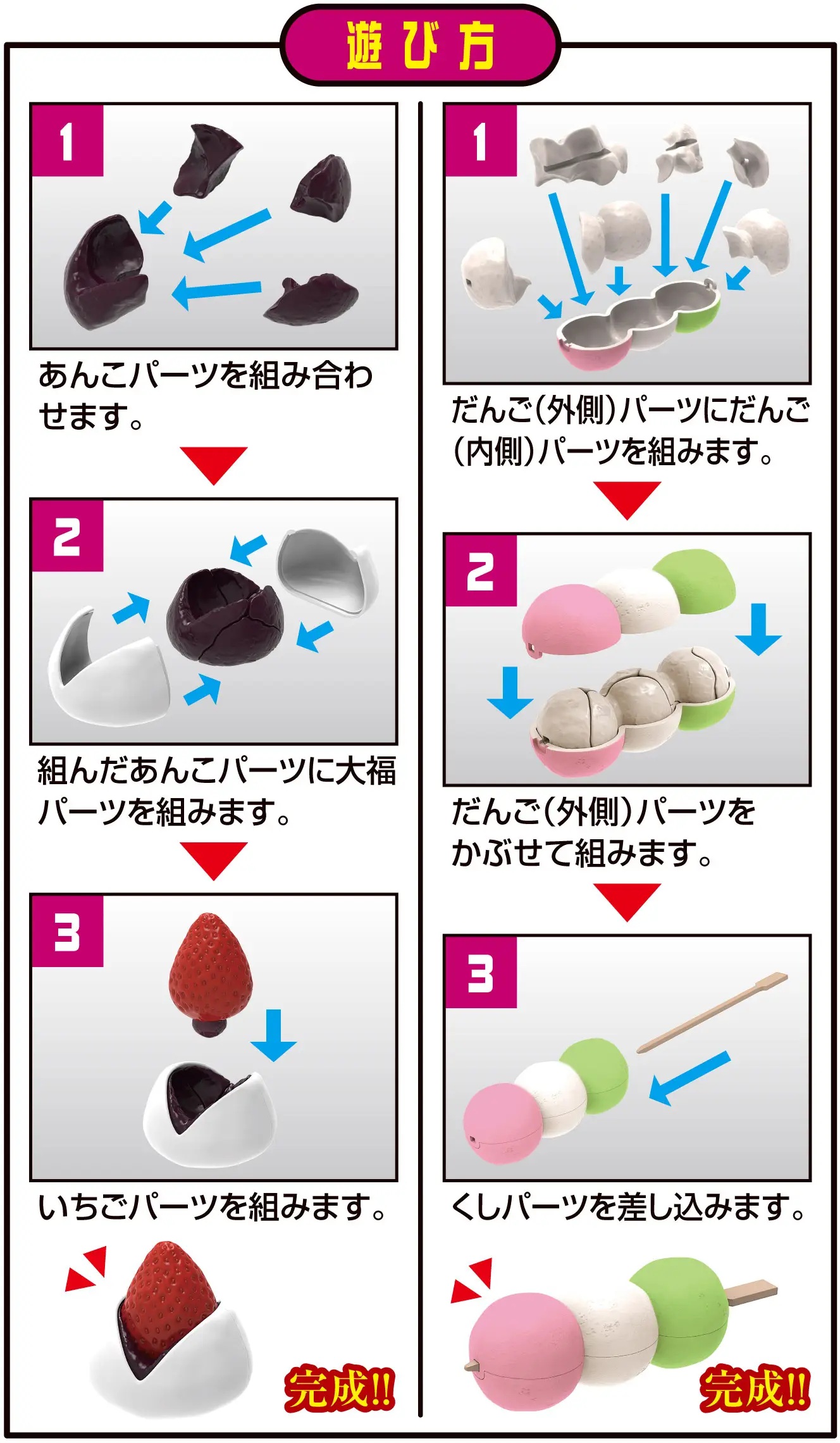 This is a "Kaitai Puzzle Lite" Japanese sweets puzzle set from MegaHouse where, when you combine each part correctly, you'll be able to complete a strawberry daifuku and a three-color dango! It also comes with a plate sheet to put the completed Japanese sweets on. It's a charming touch of Japanese culture for your collection -- place your order today!