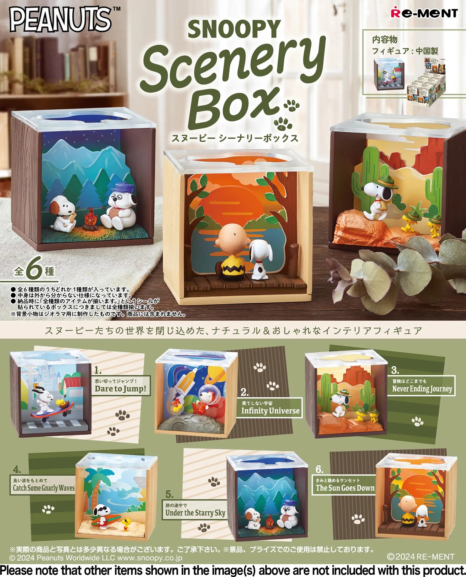 Re-Ment brings us a lineup of natural and stylish interior decor items starring Snoopy! Three-dimensional figures of the world's most famous beagle plus his friends and family are combined with multiple-layered printed backgrounds for an intriguing sense of depth. There are six different scenes to collect and trade, and you'll get one of each. Order yours today!