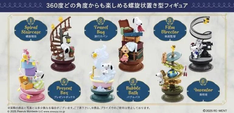 Re-Ment's newest "Snoopy" selection presents the world's most famous beagle from the classic "Peanuts" comic strip in mini dioramas incorporating spiral shapes! These charming vignettes highlight Snoopy's versatility, and they'd make a wonderful addition to your collection! There are six different scenes to collect and trade, and you'll get one of each. Place your order today!