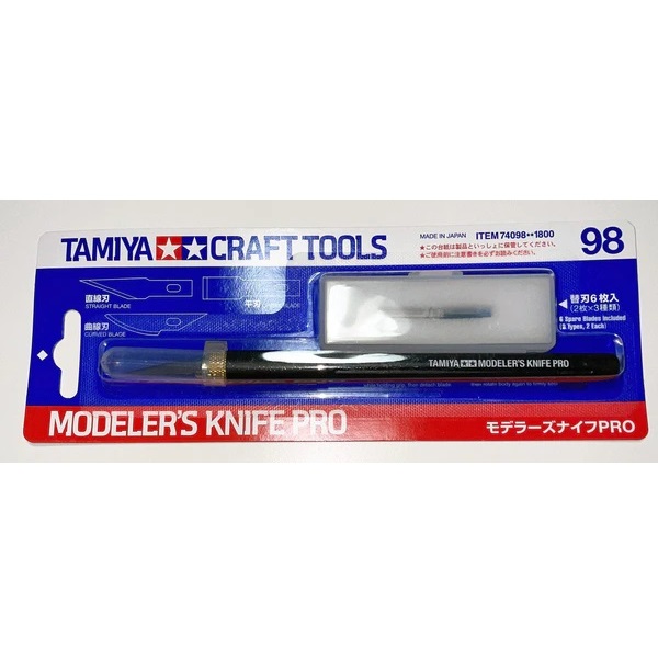 Tamiya is proud to introduce the latest professional knife for modelers which is compatible with four types of blades and is ideal for precision tasks. The body is made from a durable fibeglass-reinforced plastic and features an elastomer grip and a metal clasp to secure the blade. The included blades are made from a high-grade tool steel alloy and can be used for hobby, craft, and art applications.