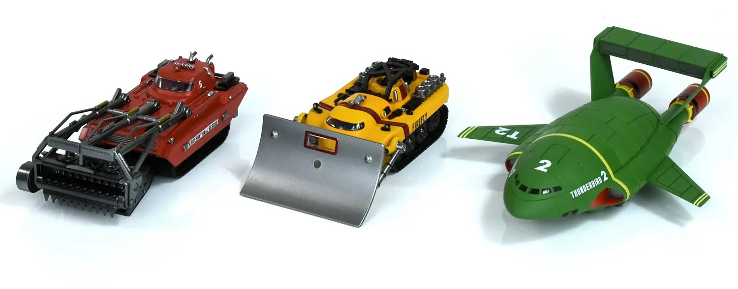 The unique and fascinating mecha that appeared in the popular Gerry Anderson TV show "Thunderbirds," which began airing in Japan in 1966, are getting a new set of plastic model kits from Bellfine, made with completely new molds! This installment includes three items: Thunderbird 2, a large general-purpose transport plane equipped with a rescue mecha that rushes to disaster sites; the Jet Bulldozer, a heat-resistant bulldozer that clears rubble and extinguishes fires at any fire scene; and the Iron Claw Tank, a rock drill that breaks up rocky mountains with its steel claws attached to a rotating drum. Order these incredible machines for your own collection today!