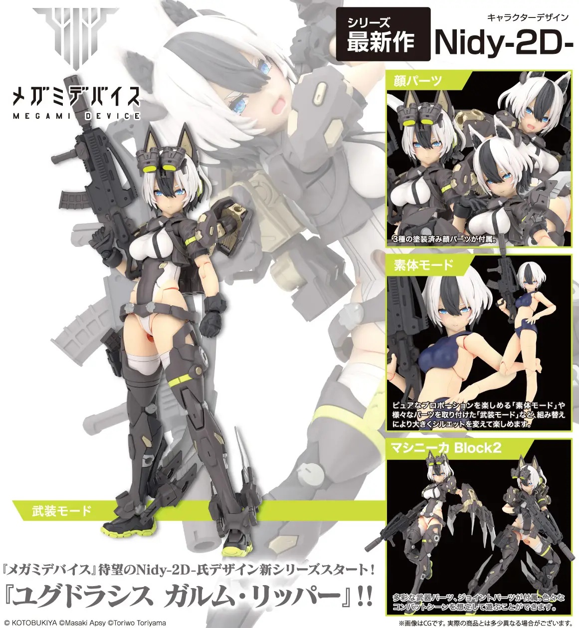 The long-awaited new series within Kotobukiya's "Megami Device" model kits has begun -- Garm Ripper debuts the "Yggdrasis" lineup, which mixes characters and creatures from Norse mythology with a hard-hitting military design! This Block 2-compatible series is from Nidy-2D-, designer of the Asura and Koubou series.
