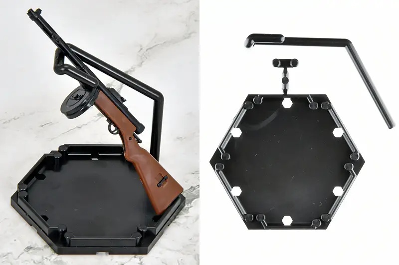 As a collaboration between Tomytec's "Little Armory" and "Girls' Frontline 2: Exilium," a post-apocalyptic strategy RPG where you blaze a trail with android girls, this assembly kit of the gun wielded by the tactical doll Suomi is now available in special "Girls' Frontline 2" packaging! It also comes with a display card for displaying the completed gun alongside the character. Order it for your own collection today!