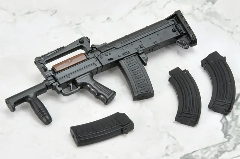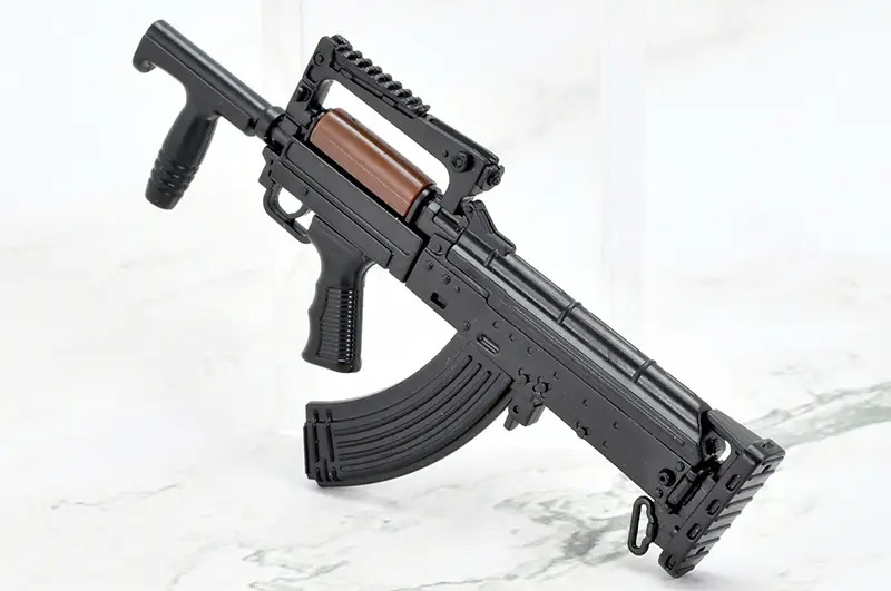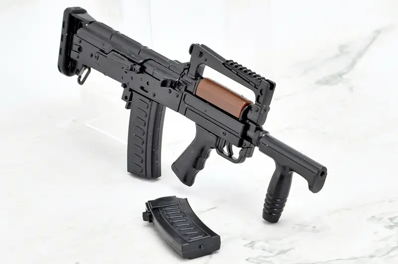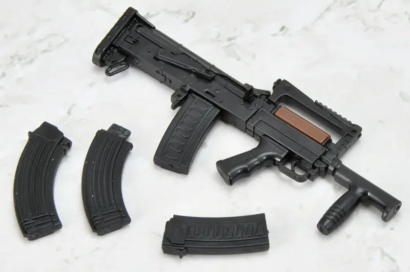 As a collaboration between Tomytec's "Little Armory" series of 1/12-scale firearm model kits and the post-apocalyptic strategy RPG "Girls' Frontline 2: Exilium," this assembly kit for the gun wielded by the tactical doll Groza is now available with an all-new mold and special "Girls' Frontline 2" packaging! It comes with a stand and a card to display the completed gun together with the character. Two types of magazines are included as well. Order yours today!