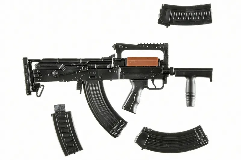 The OTs-14 Groza is a Russian bullpup rifle for Spetsnaz use, based on the AKS74U, and was designed to deliver high power in a short overall length. In addition to the standard 9x39mm subsonic ammunition model, there is also a powerful model that uses the same 7.62x39mm ammunition as the AK47.