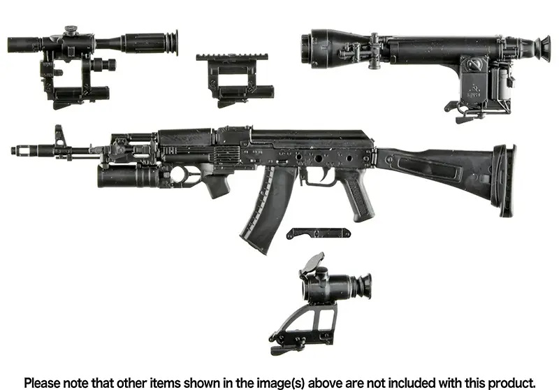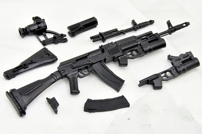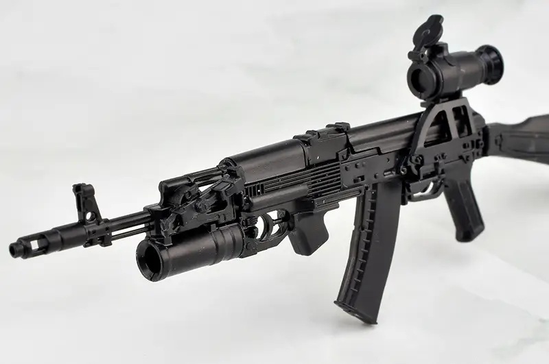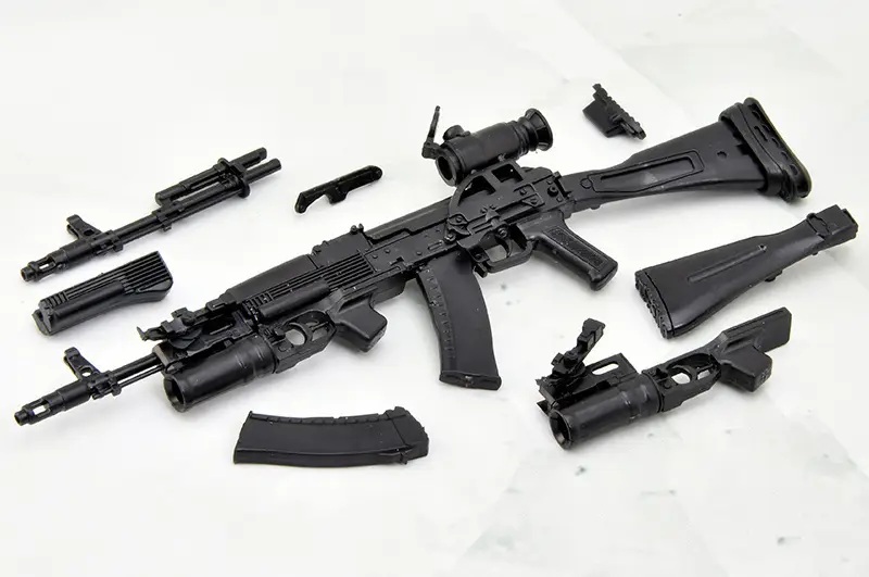Tomytec's "Little Armory" lineup now brings us the dignified style of an AK74M equipped with a GP25 grenade launcher, recreated in 1/12 scale! This kit includes not only the GP25 grenade launcher, but also a stock with a recoil pad to absorb the intense recoil, and a 2.8x 1P78-type scope. (It can also be assembled without the launcher attached.) The stock can be displayed in either the retracted or extended position by swapping parts, and the grenade launcher sight can be attached at any angle. The GP25 grenade launcher can also be attached to the separately-sold [LA010] AKM type and [LA079] AKMS type. The scopes included with the separately-sold [LS08] AK Anna Katori Mission Pack can also be attached to this weapon. Place your order today!