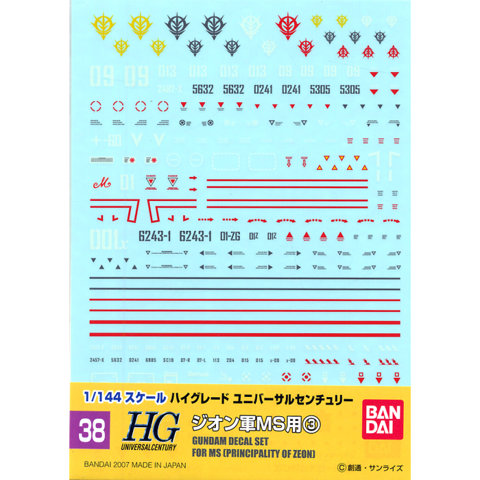 This sheet of water-slide decals is recommended for HGUC Dom/Rick Dom, Zeong, and Gyan model kits, and can be used with other HGUC Zeon MS model kits as well.