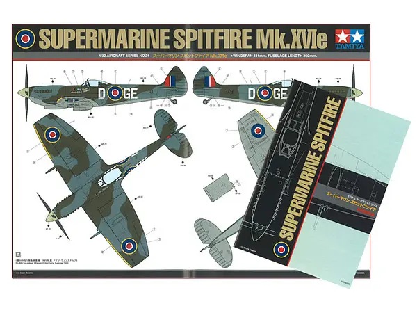 Tamiya adds to its selection of magnificent 1/32-scale Spitfire kits with this release of the Mk.16e! Features a beautifully rendered Packard Merlin 266 engine, easily seen with the removable magnet-attached cowl panels, plus an accurate bubble canopy and distinctive clipped wings. Includes three marking variations, photo-etched metal detail parts, and self-adhesive canopy masks for painting. The included reference manual (with images) is in Japanese, English, French and German!