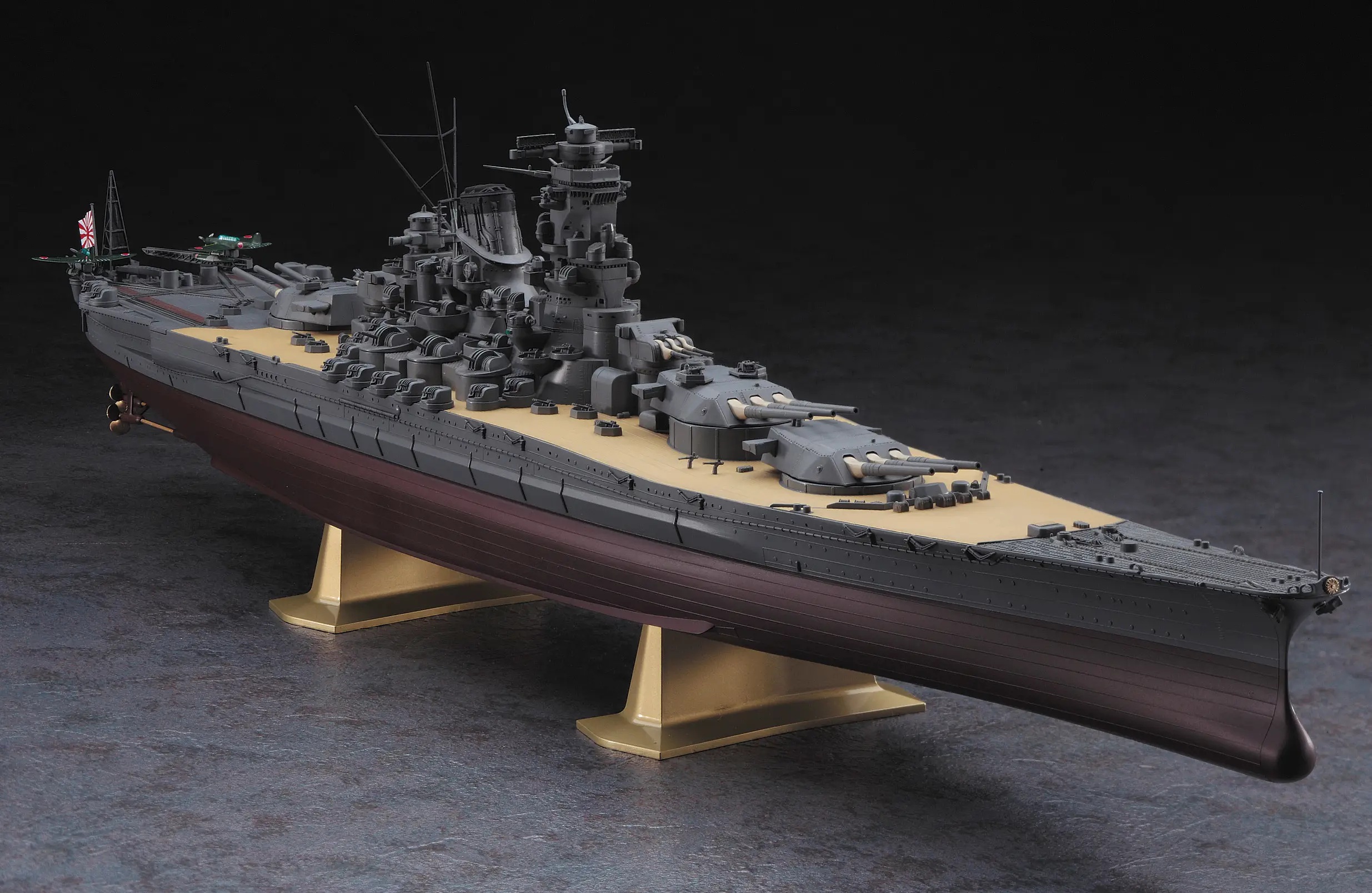 Hasegawa brings us a 1/450-scale model kit of the iconic Japanese battleship Yamato, as she was seen during Operation Ten-Go in 1945! An American aircraft carrier model is also included. Order yours today!