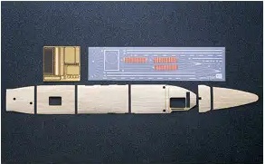 This is a fine set of wooden deck parts and photo-etched metal detail parts for Hasegawa's 1/700 scale triple-flight deck Akagi kit (linked below). The wooden deck parts are self-adhesive. Includes a sheet of dry transfers for the deck markings. Builds the early (1927-1934) or late type (1934-1935) versions of the Akagi.
