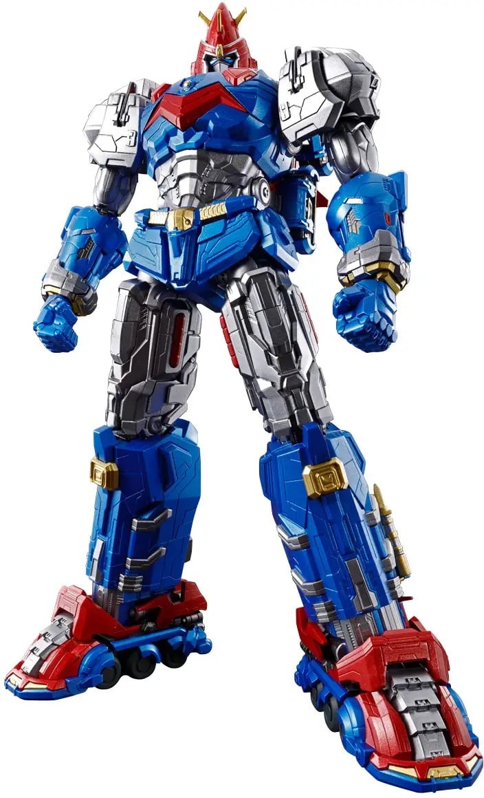 "Voltes V Legacy" is a live-action TV series made in the Philippines, based on the classic anime "Super Electromagnetic Machine Voltes V," and now the Voltes V from that highly popular show is joining Bandai's "Soul of Chogokin" action-figure lineup, with its five transforming and combining Volt Machines! This latest Voltes V was created using CG, and is carefully recreated in high detail, while the transformation and combining mechanisms are fully realized with "Soul of Chogokin" quality! The canopies of the Voltes Cruiser and Voltes Lander are reversible, allowing you to recreate the presence or absence of shutters without having to replace them. The Voltes Bomber, which unfolds in a large scale in the CG footage, also features a unique transformation gimmick, allowing it to combine with the Voltes Cruiser while maintaining its strength. The fists that unfold when using the Voltes Bomber can hold weapons, too! In addition to transforming and combining, the figure is also posable in its combined state for a variety of action poses. The Sky Sword is sculpted in an impressive size! Left and right interchangeable hands are included to display Voltes V holding the sword downward, too. The movable shoulder mechanism allows the Sky Sword to be held high as well! The Electromagnetic String is made of bendable material, allowing for flexible attacks in combination with the main body! The tips of the Electromagnetic String can be swapped to unleash the Choudenji Top! The Voltes Bazooka is also included, and it can be attached to either arm; open hand parts for supporting the gun barrel are also included for each side. The hand parts used for transforming and combining are large enough to store in the Voltes Bomber, but can also hold weapons! A special base is included to display all five Voltes Machines when separated. They can transform into Heavy Tank Mode, too, using special parts! Order this spectacular robot for your own collection today!